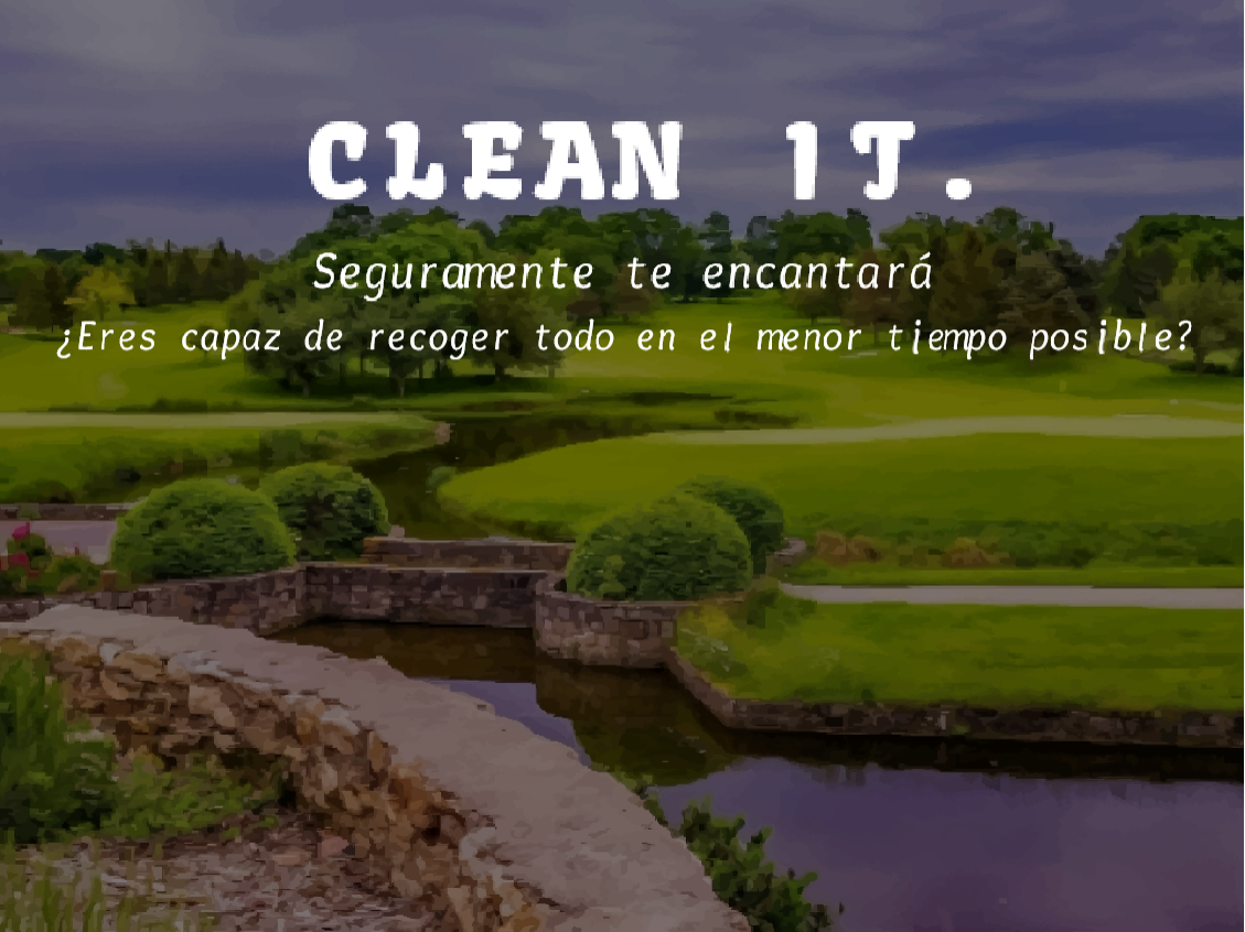 ¡Bienvenido a CLEAN IT, el videojuego que promueve la limpieza y el cuidado del medio ambiente! Nos complace que hayas adquirido nuestra versión limitada promocionada en la Expo Feria a mitad de precio. CLEAN IT es un juego diseñado especialmente para incentivar el hábito de recoger y clasificar los residuos en espacios públicos, con un enfoque principal en los parques.